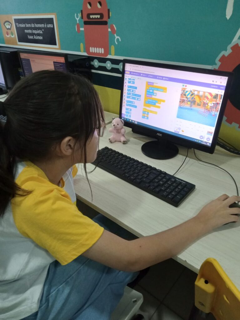 Bloco 2 – Design e narrativas interativas: Desenvolvimento de personagens, roteiros e trilhas sonoras, com valorização de histórias locais e da diversidade cultural amazônica. E Bloco 3 – Criação e publicação de jogos digitais: Construção de protótipos jogáveis, testes em pares e preparação para a apresentação final, incentivando o trabalho em equipe e a autoconfiança das alunas.